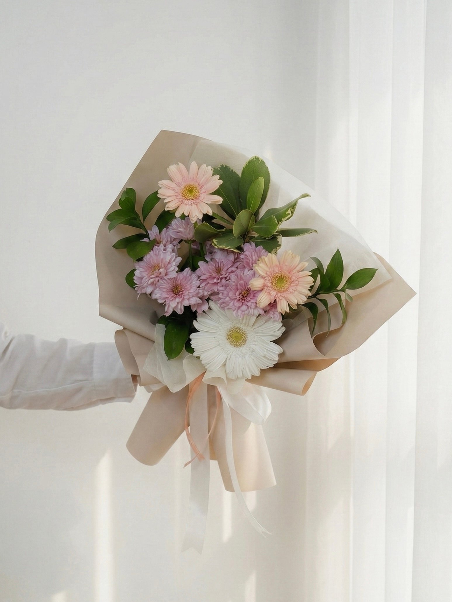 Cloud Lily berisi 2 tangkai hydrangea dan 1 tangkai lily