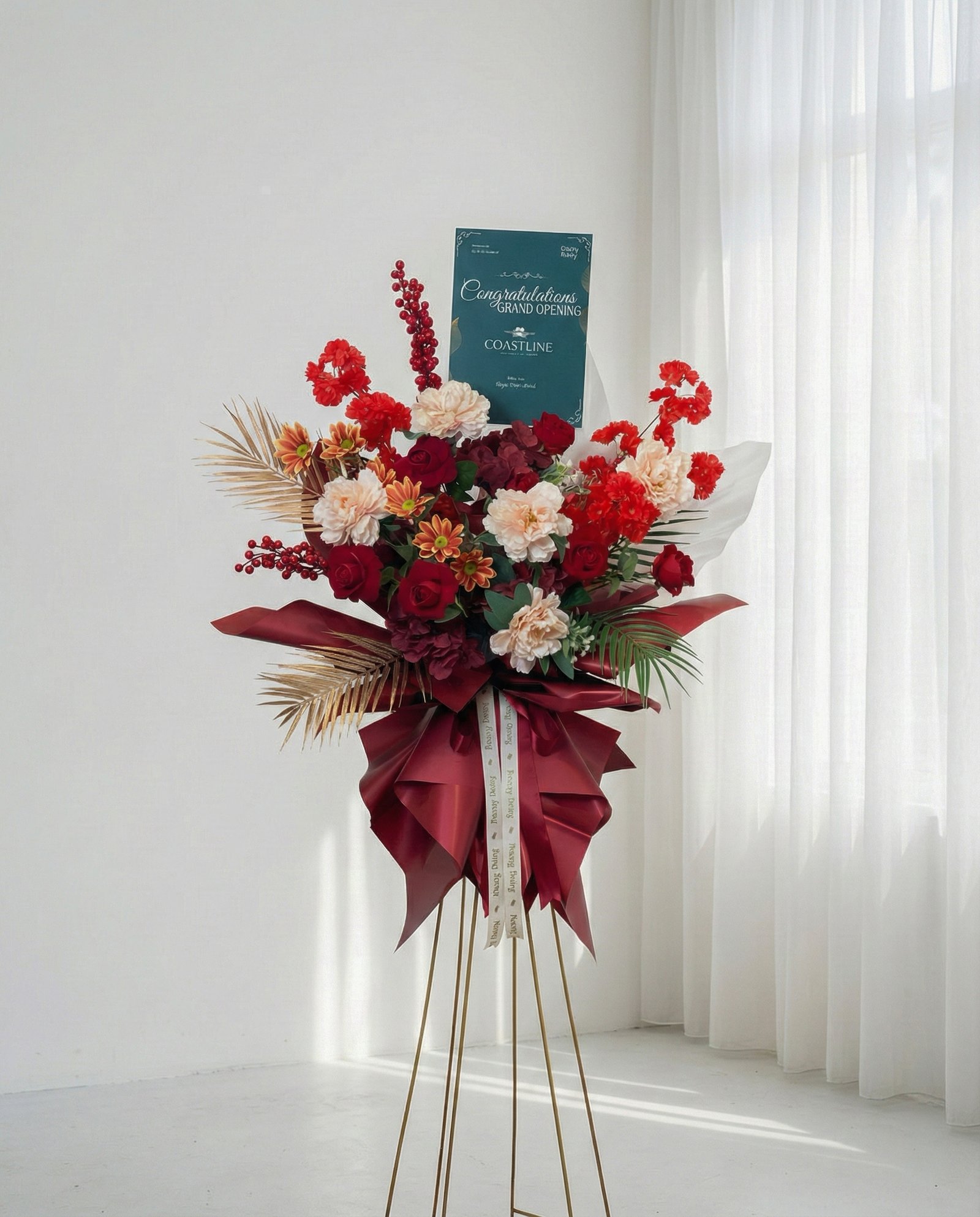 Peony Story menyediakan standing flower mewah di Makassar dengan wrapping penuh yang menonjolkan keindahan bunga artificial berkualitas tinggi. Produk ini dirancang untuk memberikan pengalaman terbaik kepada pelanggan, dengan layanan pengiriman eksklusif di Makassar.